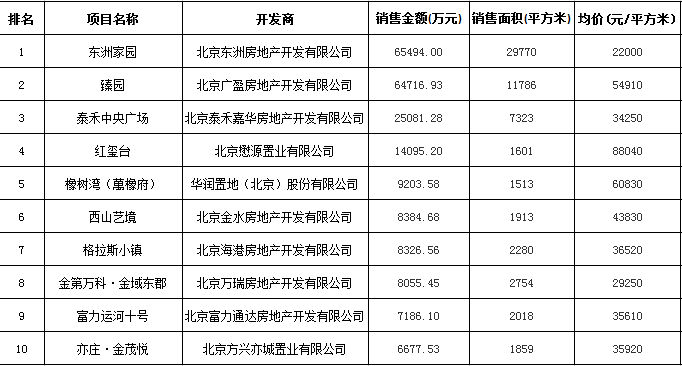 北京區(qū)域房地產項目一周銷售數據(2015年8月31日-9月6日)
