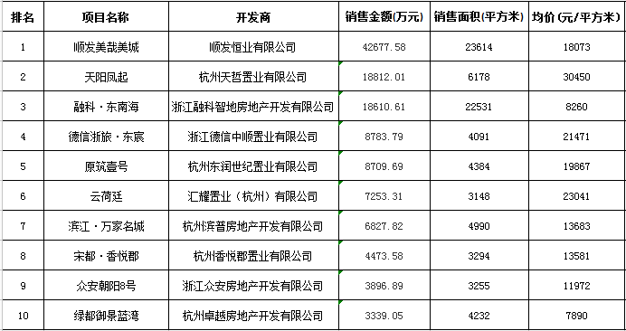 杭州區(qū)域房地產(chǎn)項(xiàng)目一周銷售數(shù)據(jù)(2015年10月5日-10月11日)