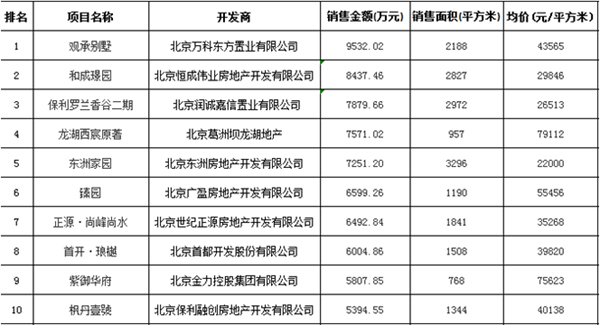 北京區(qū)域房地產(chǎn)項(xiàng)目一周銷售數(shù)據(jù)(2015年11月2日-11月8日)