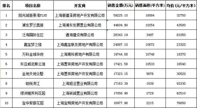 上海區(qū)域房地產(chǎn)項(xiàng)目一周銷售數(shù)據(jù)(2015年12月7日-12月13日)