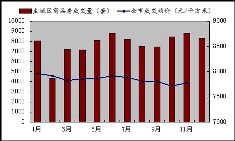 2015年全年,成都市主城區(qū)商品房成交套數(shù)約9.3萬套,比2014年上浮4.07%,全年均價基本維持在7800元/平方米左右。
