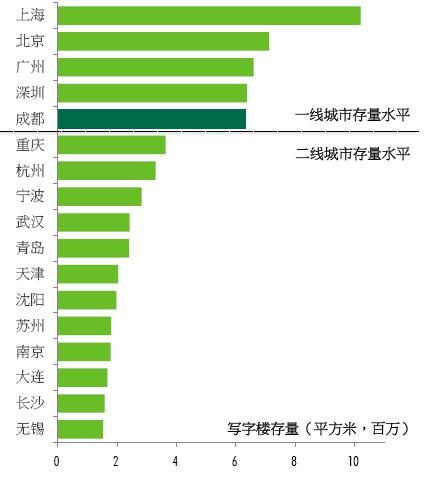 觀點新媒體了解到,2015年上半年,成都寫字樓存量突破600萬平方米,與“北上廣深”等一線城市存量水平相當。