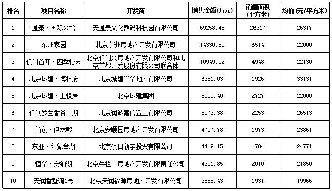 北京區(qū)域房地產項目一周銷售數(shù)據(jù)(2016年1月18日-1月24日)