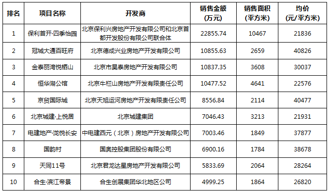 北京區(qū)域房地產(chǎn)項(xiàng)目一周銷(xiāo)售數(shù)據(jù)(2016年3月7日-3月13日)