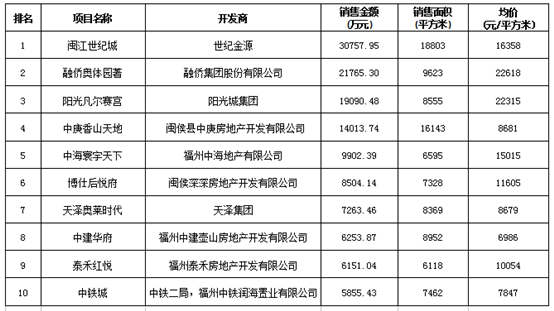 福州區(qū)域房地產(chǎn)項(xiàng)目一周銷售數(shù)據(jù)(2016年3月21日-3月27日)