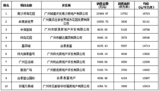 廣州區(qū)域房地產(chǎn)項(xiàng)目一周銷(xiāo)售數(shù)據(jù)(2015年4月4日-4月10日)