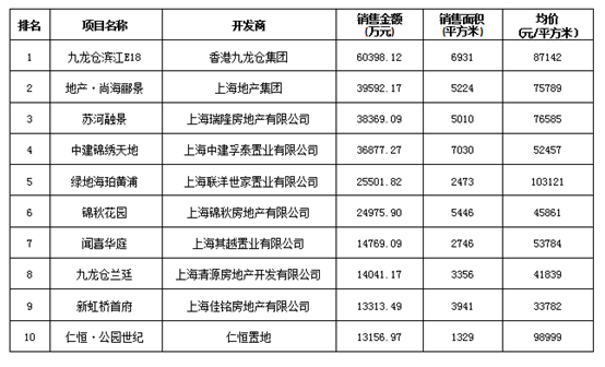 上海區(qū)域房地產(chǎn)項(xiàng)目一周銷售數(shù)據(jù)(2016年5月2日-5月8日)