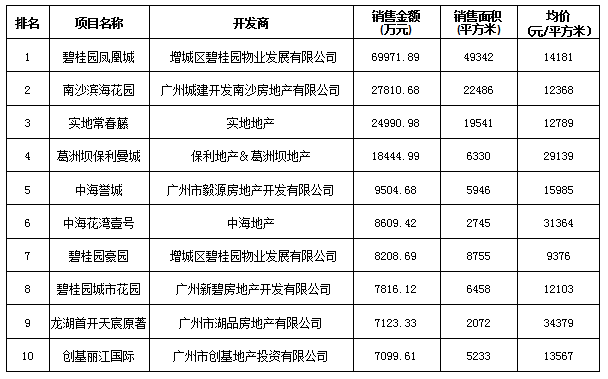 廣州區(qū)域房地產(chǎn)項(xiàng)目一周銷(xiāo)售數(shù)據(jù)(2016年5月2日-5月8日)