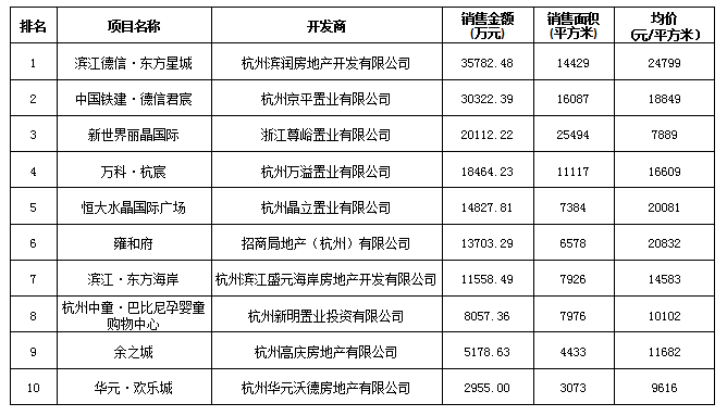 杭州區(qū)域房地產(chǎn)項(xiàng)目一周銷售數(shù)據(jù)(2016年5月9日-5月15日)