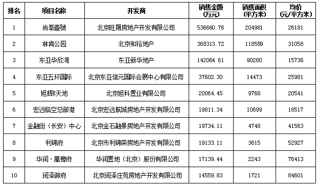 北京區(qū)域房地產(chǎn)項(xiàng)目一周銷(xiāo)售數(shù)據(jù)(2016年6月6日-6月12日)