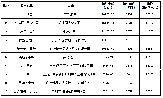 廣州區(qū)域房地產(chǎn)項(xiàng)目一周銷售數(shù)據(jù)(2016年6月13日-6月19日)