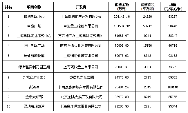附:上海區(qū)域房地產項目一周銷售數據(2016年6月20日-6月26日)