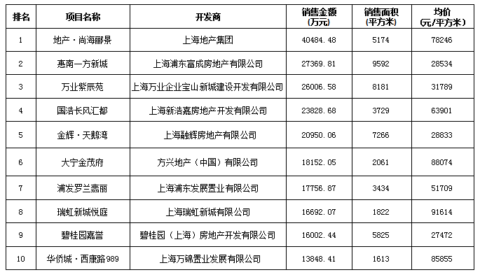 附:上海區(qū)域房地產(chǎn)項目一周銷售數(shù)據(jù)(2016年7月4日-7月10日)
