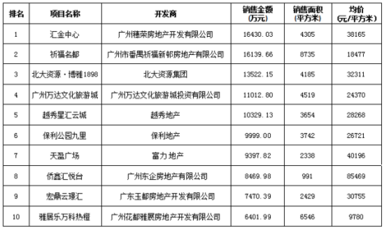 附:廣州區(qū)域房地產(chǎn)項(xiàng)目一周銷售數(shù)據(jù)(2016年7月4日-7月10日)