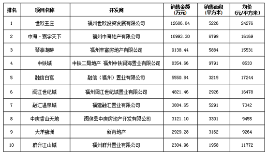 附:福州區(qū)域房地產(chǎn)項(xiàng)目一周銷售數(shù)據(jù)(2016年7月11日-7月17日)