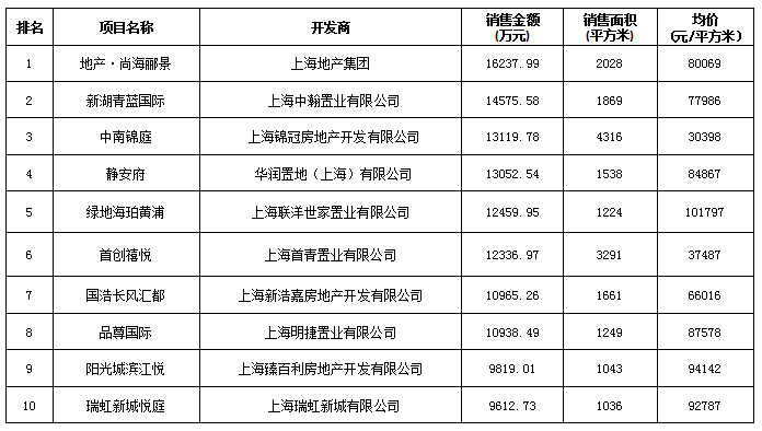 附:上海區(qū)域房地產(chǎn)項目一周銷售數(shù)據(jù)(2016年8月29日-9月4日)