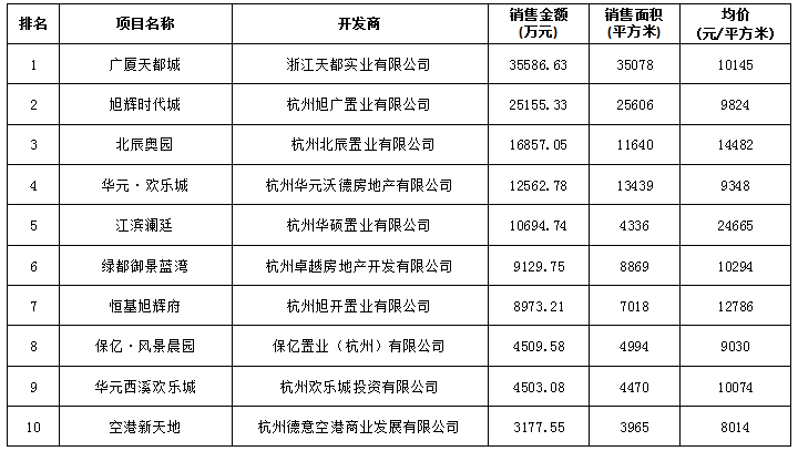附:杭州區(qū)域房地產(chǎn)項目一周銷售數(shù)據(jù)(2016年9月19日-9月25日)