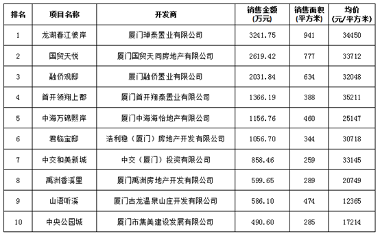 附:廈門區(qū)域房地產(chǎn)項(xiàng)目一周銷售數(shù)據(jù)(2016年10月10日-10月16日)