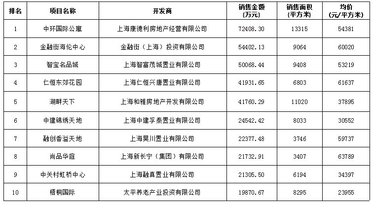 附:上海區(qū)域房地產(chǎn)項目一周銷售數(shù)據(jù)(2016年10月24日-10月30日)