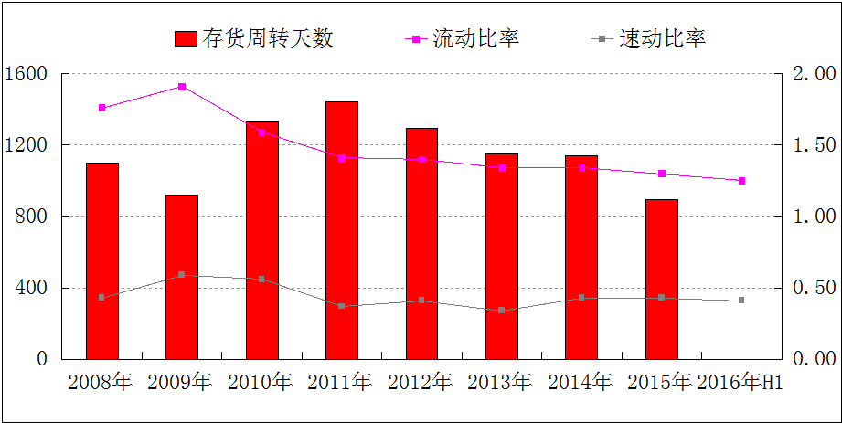 2008-2016年上半年萬科存貨周轉(zhuǎn)及償債能力表