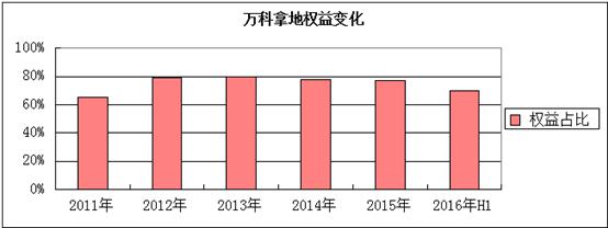 萬科披露,公司近年來約7成項(xiàng)目通過合作方式獲取。其中2014年、2015年及2016年上半年,新增項(xiàng)目個數(shù)分別為41個、105個及70個,拿地面積591萬平方米、1580萬平方米及1260.1萬平方米,對應(yīng)權(quán)益金額為95.42億元、311.28億元及465.8億元。其中包括沿海家園天津北倉鎮(zhèn)項(xiàng)目、融信上海靜安地王在內(nèi),均是通過合作開發(fā)形式獲得。