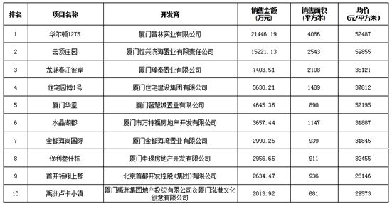 附:廈門區(qū)域房地產(chǎn)項(xiàng)目一周銷售數(shù)據(jù)(2017年2月13日-2月19日)