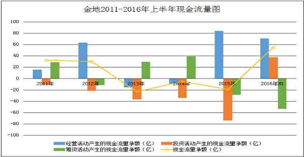 2014年的情況也一樣,當(dāng)年,金地經(jīng)營活動產(chǎn)生的現(xiàn)金流量凈額為-9.51億元,投資活動產(chǎn)生的現(xiàn)金流量凈額為-34.04億元,籌資活動產(chǎn)生的現(xiàn)金流量凈額為38.62億元,總體現(xiàn)金流量凈額為-4.94億。
