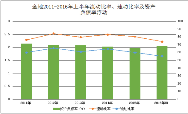 2016年金地中期業(yè)績報告其中顯示,金地上半年實現(xiàn)經(jīng)營性現(xiàn)金流凈額70.6億元,持有貨幣資金204.3 億元,公司債務(wù)融資余額為355億元,債務(wù)融資加權(quán)平均成本為4.81%,資產(chǎn)負(fù)債率為68.2%,剔除并不構(gòu)成實際償債壓力的預(yù)收賬款后,公司實際資產(chǎn)負(fù)債率為58.2%,凈負(fù)債率為32.6%。