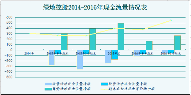 值得注意的是,進(jìn)入2016年,綠地控股經(jīng)營性現(xiàn)金流量凈額有所改善,2016年半年末和前三季度末分別為-117.29億元、-60.7億元,較上年同期的-279.49億元和-357.6億元分別上漲了58%和83%。公告顯示,經(jīng)營活動現(xiàn)金流凈額的大幅變動是由于統(tǒng)計期內(nèi)銷售回籠的增加,接近綠地的業(yè)內(nèi)人士表示,綠地2016年全年的經(jīng)營活動凈現(xiàn)金流有望實現(xiàn)轉(zhuǎn)正。