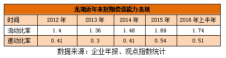除此之外,受益于流動(dòng)負(fù)債增長(zhǎng)趨緩乃逐步下降,代表龍湖短期償債能力的流動(dòng)比率和速動(dòng)比率指標(biāo)亦得到了有效優(yōu)化。流動(dòng)比率從2013年的1.36上升至2015年的1.69,速動(dòng)比率也從2013年的0.3上升至2015年的0.54。