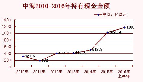 也就是說,一年之內,中海手上持有的現(xiàn)金翻了一番。但對于變化的原因,中海方面并沒有明確披露。