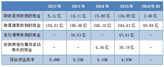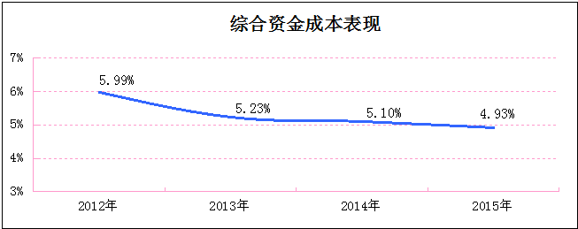 受益于央企的背書效應(yīng)及國內(nèi)融資環(huán)境的寬松,盡管對銀行借款的依賴程度較高,招商蛇口(招商地產(chǎn))得以補充較為充足的資金并嚴(yán)格控制資金成本,其中綜合資金成本由2012年的5.99%下降至2016年上半年的4.93%。