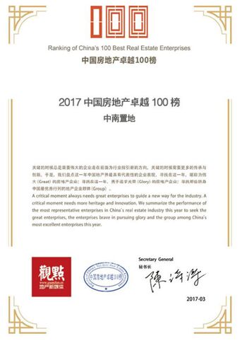 根據(jù)發(fā)布會現(xiàn)場消息,中南置地憑借優(yōu)異的表現(xiàn),榮登主榜單“2017中國房地產(chǎn)卓越100榜”,位列第21名,同時榮獲“2017中國房地產(chǎn)商業(yè)模式卓越榜”位列第7名榮譽。
