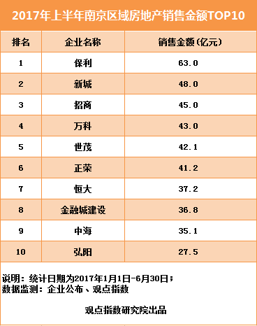 2017年上半年,南京樓市榜單前十房企重新洗牌,去年同期的一半企業(yè)均未出現(xiàn)在TOP10榜單中,萬科更是意外跌出前三,以43億元的銷售額位居第四。