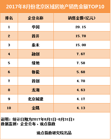 據(jù)觀點指數(shù)統(tǒng)計,8月房企銷售排行中,上半年進入前五的萬科已經(jīng)不見了蹤影,而華潤則憑借多個新盤與舊盤同時發(fā)力,超過首開、首創(chuàng)等企業(yè),摘得銷冠。