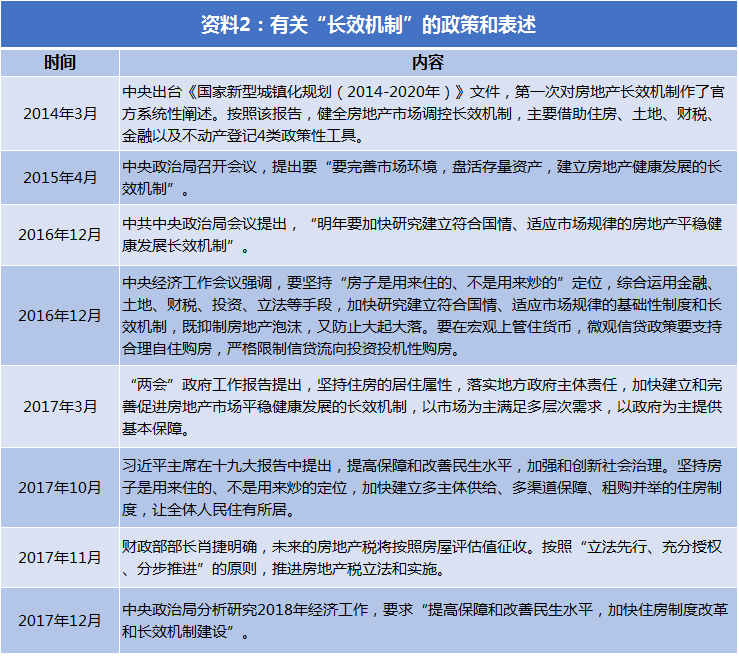 關(guān)于長(zhǎng)效機(jī)制的內(nèi)容,2016年中央經(jīng)濟(jì)工作會(huì)中已經(jīng)提出:綜合運(yùn)用金融、土地、財(cái)稅、投資、立法等手段,加快研究建立符合國(guó)情、適應(yīng)市場(chǎng)規(guī)律的基礎(chǔ)性制度和長(zhǎng)效機(jī)制。