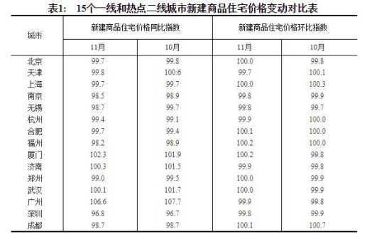 另?yè)?jù)測(cè)算,一線(xiàn)城市新建商品住宅和二手住宅價(jià)格同比漲幅均連續(xù)14個(gè)月回落,11月份比10月份分別回落0.3和0.2個(gè)百分點(diǎn)。二線(xiàn)城市新建商品住宅價(jià)格同比漲幅比上月略微擴(kuò)大0.1個(gè)百分點(diǎn),二手住宅價(jià)格同比漲幅與上月相同。三線(xiàn)城市新建商品住宅和二手住宅價(jià)格同比漲幅均連續(xù)4個(gè)月回落,11月份比10月份分別回落0.3和0.2個(gè)百分點(diǎn)。