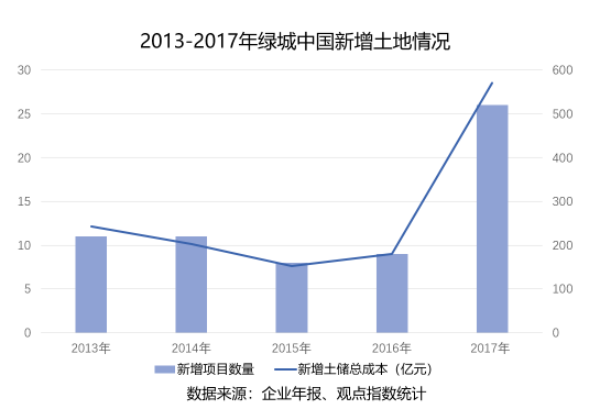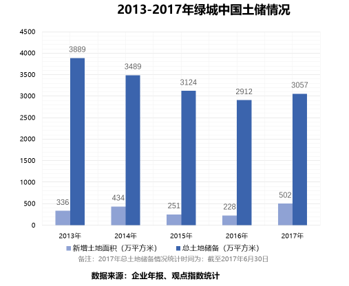 只是,當(dāng)行業(yè)集中度越來越高,以及大股東中交對規(guī)模的要求,綠城也不得不面對“規(guī)模即地位”的壓力。因此,2017年成為綠城近五年里罕見的土儲大年。