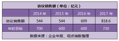 2017年,富力地產(chǎn)年度銷售目標(biāo)經(jīng)歷了從730億元到800億元的調(diào)整,最后以818.6億元的銷售額突破其調(diào)整后的目標(biāo)。