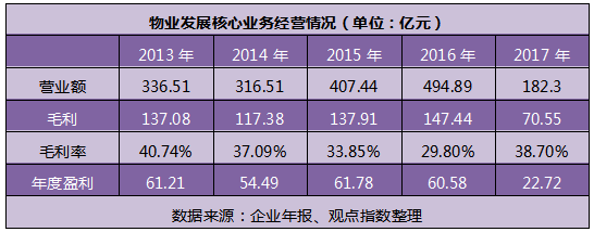 分業(yè)務(wù)來看,核心業(yè)務(wù)物業(yè)發(fā)展2017年上半年實(shí)現(xiàn)的營業(yè)收入為182.3億元,已售交付面積為165.4萬平方米。