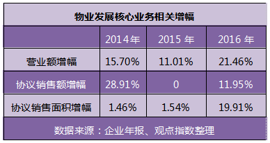 然而,上述策略最終并未能顯著體現(xiàn)在2016年的業(yè)務(wù)數(shù)據(jù)上。據(jù)觀點(diǎn)指數(shù)了解,2016年,富力地產(chǎn)總營業(yè)收入為537.3億元,同比增長21.31%,物業(yè)發(fā)展核心業(yè)務(wù)實(shí)現(xiàn)營業(yè)收入494.89億元億元,同比增長21.46%;年內(nèi)交付銷售物業(yè)總建筑面積420.9萬平方米,同比增長19.91%;實(shí)現(xiàn)協(xié)議銷售額為609億元,同比增長11.95%。