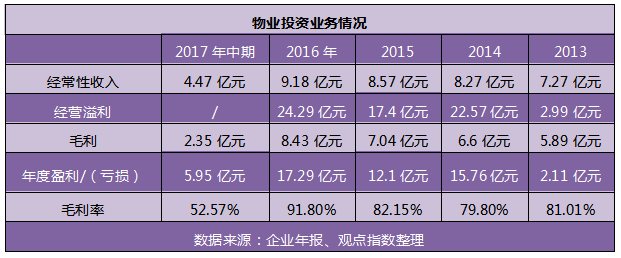 相比酒店?duì)I運(yùn)業(yè)務(wù),物業(yè)投資業(yè)務(wù)則表現(xiàn)得更好一些。截至2017年6月30日,富力地產(chǎn)的投資物業(yè)組合總建筑面積逾150萬平方米,主要包含甲級(jí)寫字樓、購物商場(chǎng)、其他零售物業(yè),另有物流及倉儲(chǔ)設(shè)施處于擴(kuò)展?fàn)顟B(tài)。