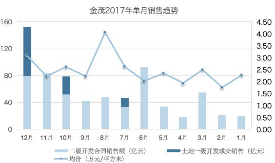 回顧過去12個月以來的銷售情況,中國金茂呈現(xiàn)出在期末沖刺的傾向,12月錄得年內(nèi)最高單月銷售額152億,全年銷售達693億元,同比增長42.89%。