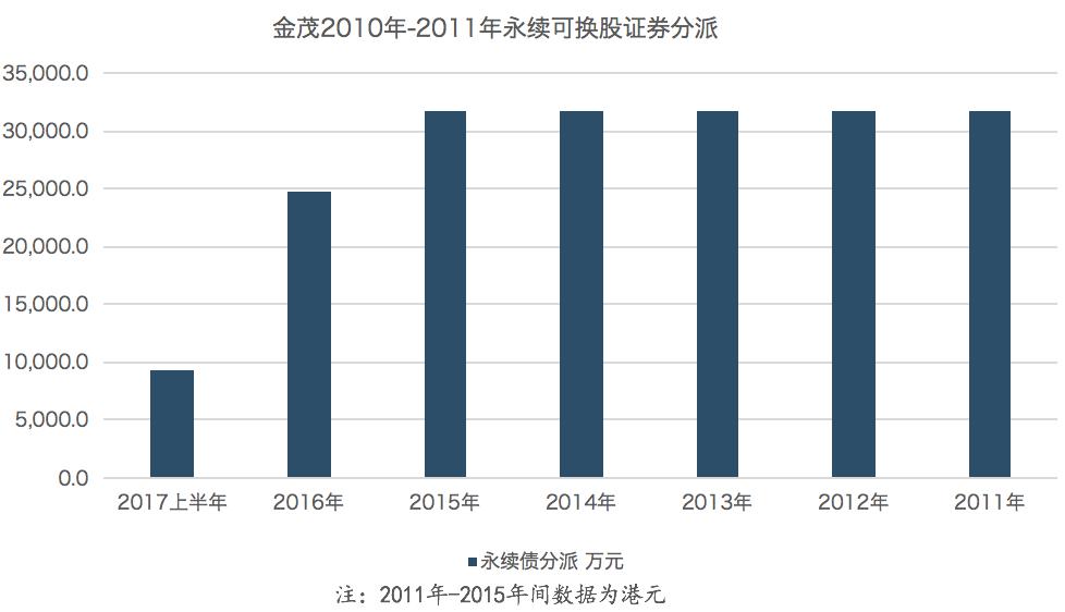 據(jù)觀點指數(shù)統(tǒng)計,自2010年至2017年上半年間,中國金茂的永續(xù)債分派累計達到19.27億元。