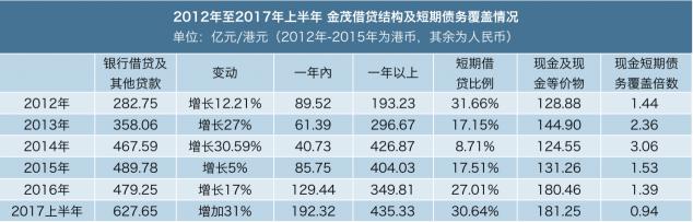2017年上半年,中國金茂擁有的銀行信貸額度為636億元,已動用的額度為423億元。