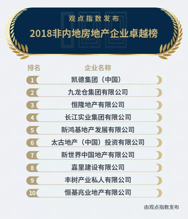 2018非內(nèi)地房地產(chǎn)企業(yè)卓越榜