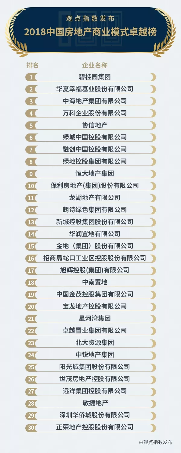 以下為2018中國房地產(chǎn)商業(yè)模式卓越榜:
