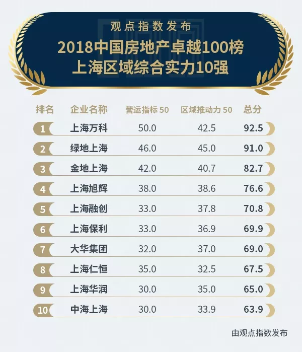 2018中國房地產(chǎn)卓越100榜上海區(qū)域綜合實(shí)力10強(qiáng)