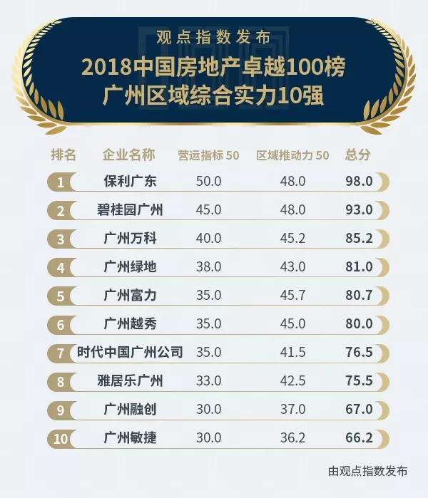 2018中國房地產(chǎn)卓越100榜廣州區(qū)域綜合實(shí)力10強(qiáng)