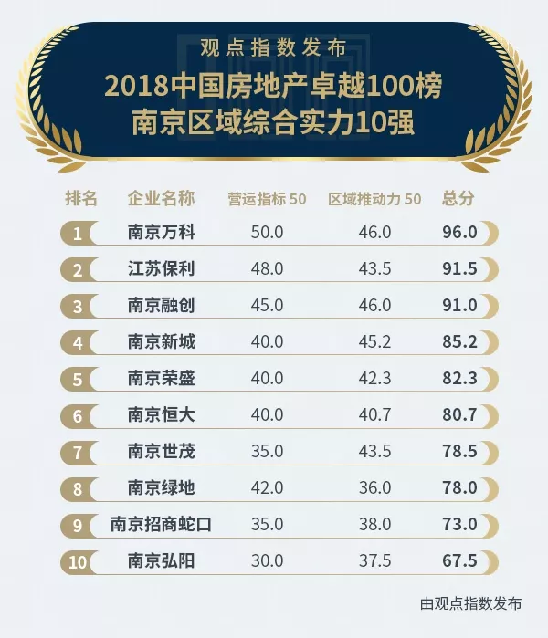 2018中國房地產(chǎn)卓越100榜南京區(qū)域綜合實(shí)力10強(qiáng)